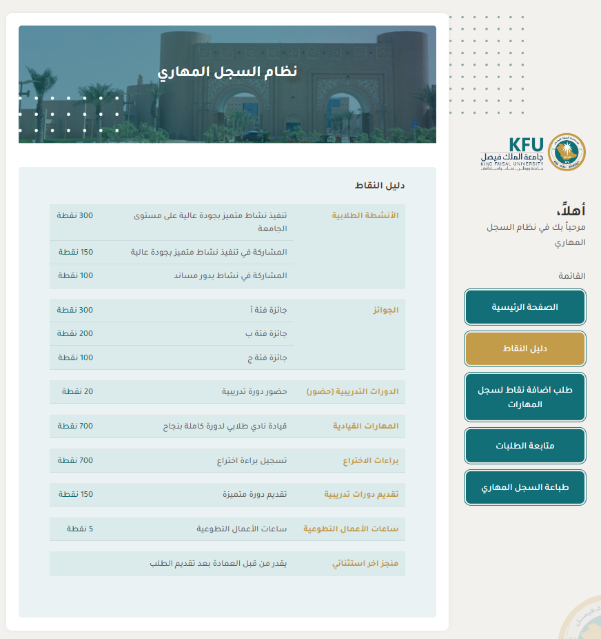 كما يرصد النظام كافة الدورات المهارية من خلال الإلتحاق ببرامج نظام تدريب بشكل مباشر بعد الحضور. يستفيد منه الطالب عند تخرجه كوثيقة رسمية تضاف مع السجل الأكاديمي توثق المهارات التي اكتسبها خلال مسيرته الجامعية.