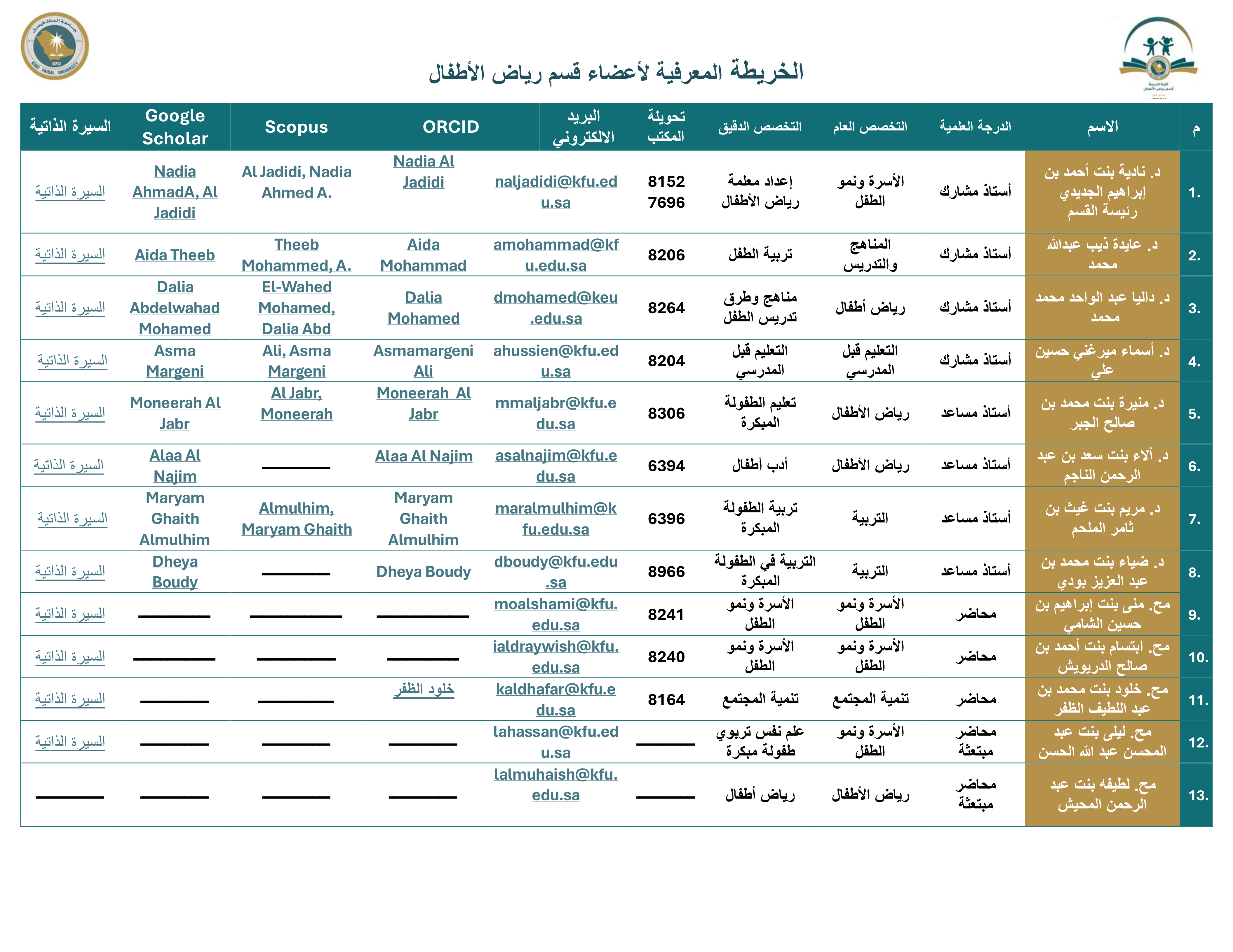 الخريطة المعرفية لأعضاء قسم رياض الأطفال