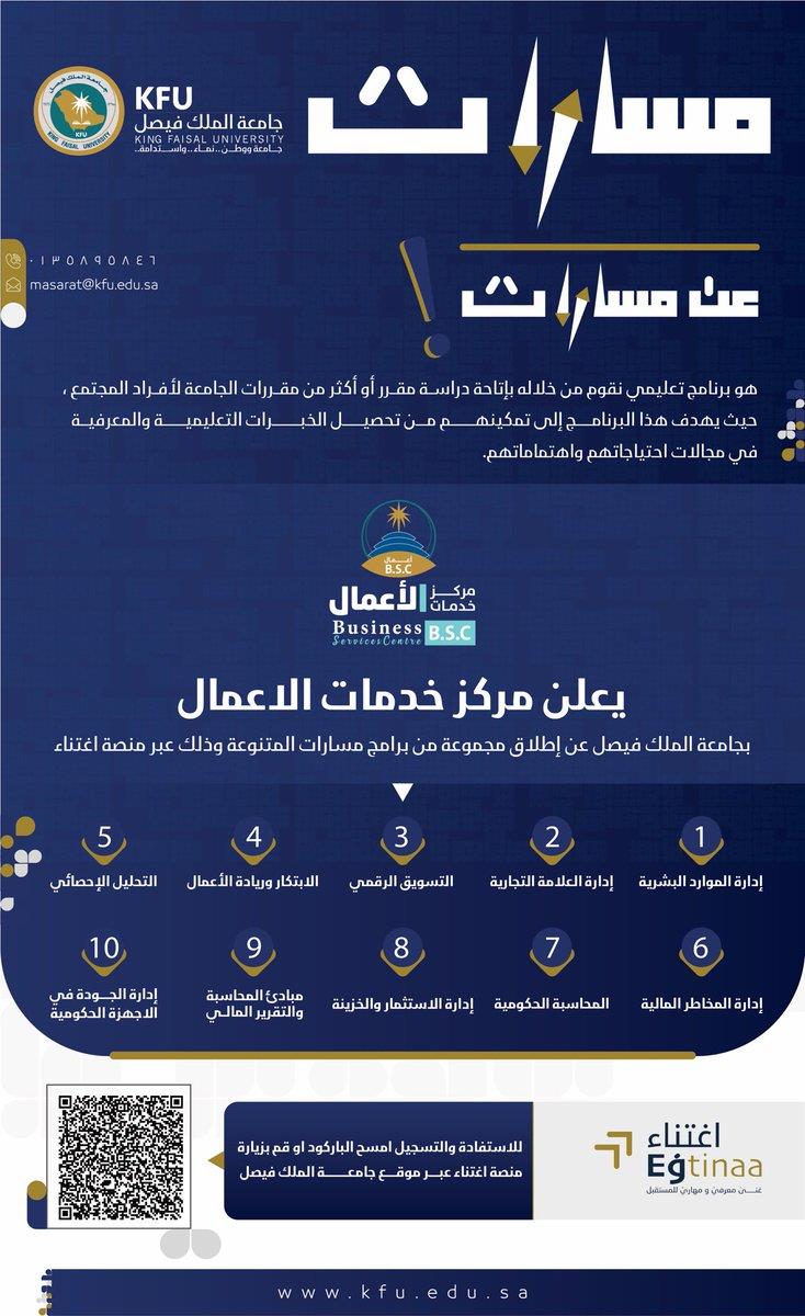 تعتبر منصة مسارات كبرنامج تعليمي يتم من خلاله إتاحة دراســة مقــرر أو أكثر من مقــررات الجامعة لأفــراد المجتمع ، حيث يهدف هذا البرنامج إلى تمكينهم من تحصيل الخبرات التعليمية والمعرفية في مجالات احتياجاتهم واهتماماتهم.