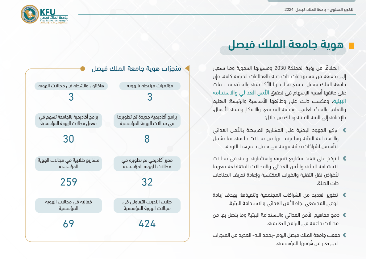 يعتبر الهاكاثون أحد فعاليات جامعة الملك فيصل تحقيقًا لأهداف استراتيجية الجامعة الداعمة للابتكار، وتوجها لتهويتها المؤسسية الرامية للإسهام في تحقيق الأمن الغذائي والاستدامة البيئية من خلال تحفيز مجموعة من المبتكرين والمطورين والخبراء في مجال الأمن الغذائي والاستدامة البيئية والذكاء الاصطناعي، وتكوين فرق عمل لابتكار حلول رقمية وتطوير تطبيقات وتقنيات تساعد على تحقيق مستقبل أفضل للأمن الغذائي والاستدامة البيئية ، وتحقيقًا لأهداف رؤية المملكة ٢٠٣٠ في مجال الاستدامة.