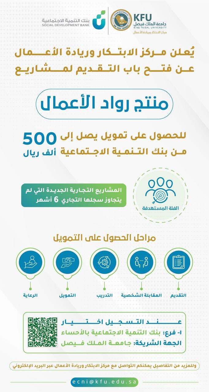 عبارة عن اتفاقية تعاون بين جامعة الملك فيصل و بنك التنمية الاجتماعية، ويقوم برنامج التمويل على عدد من الأهداف: