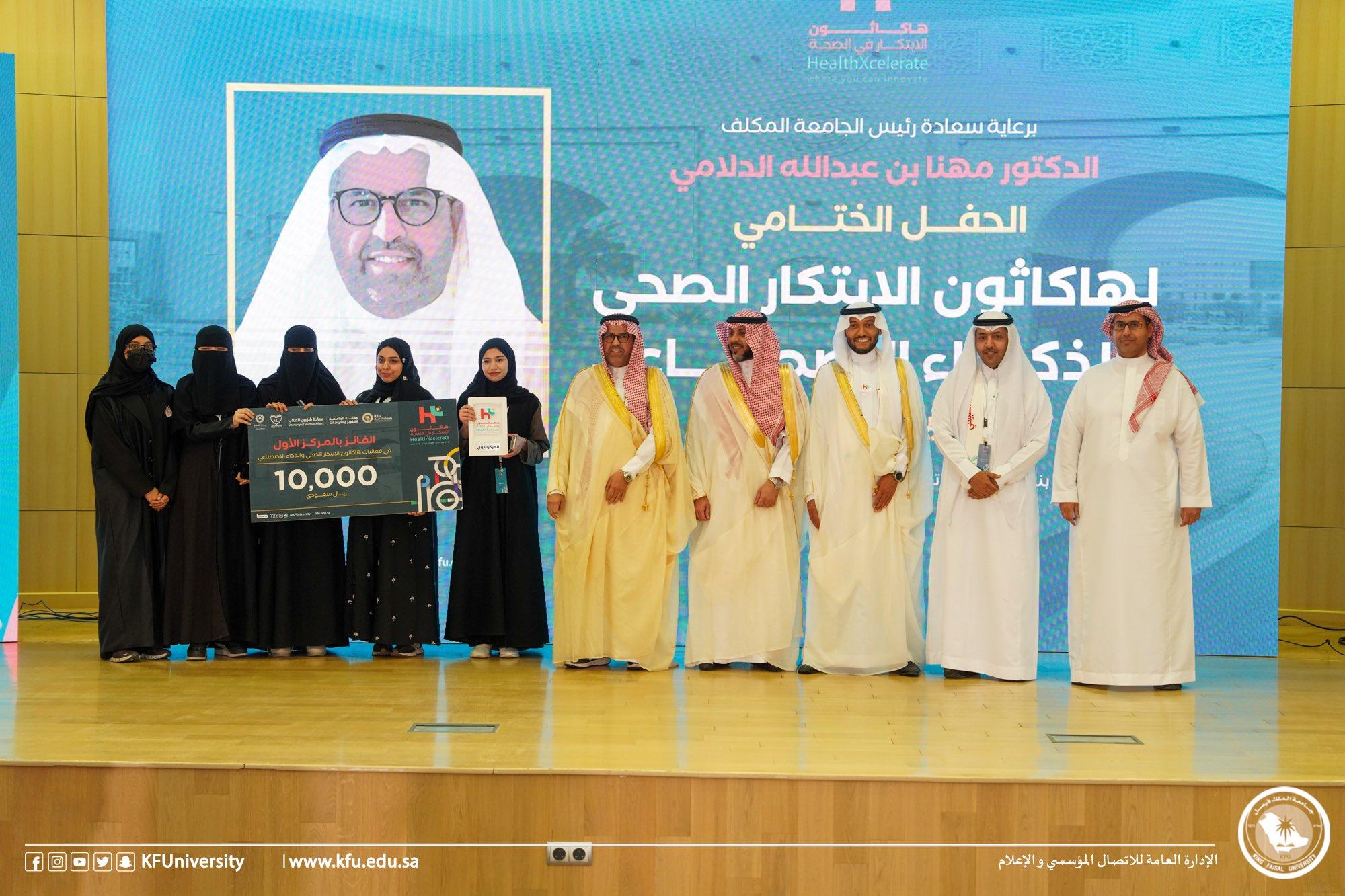 اختتمت جامعة الملك فيصل فعاليات "هاكاثون الابتكار الصحي والذكاء الاصطناعي" بنسخته الأولى تحت شعار “HealthXcelerate “ وذلك خلال الفترة من 10-12 مايو 2024م، بمشاركة 25 فريقاً من 8 جامعات سعودية للتنافس في 4 مسارات، وبجوائز مالية تتجاوز 24 ألف ريال.